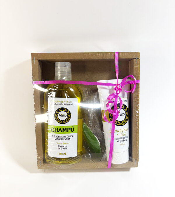 - Champú o gel de aceite de oliva virgen extra de 250 ml.